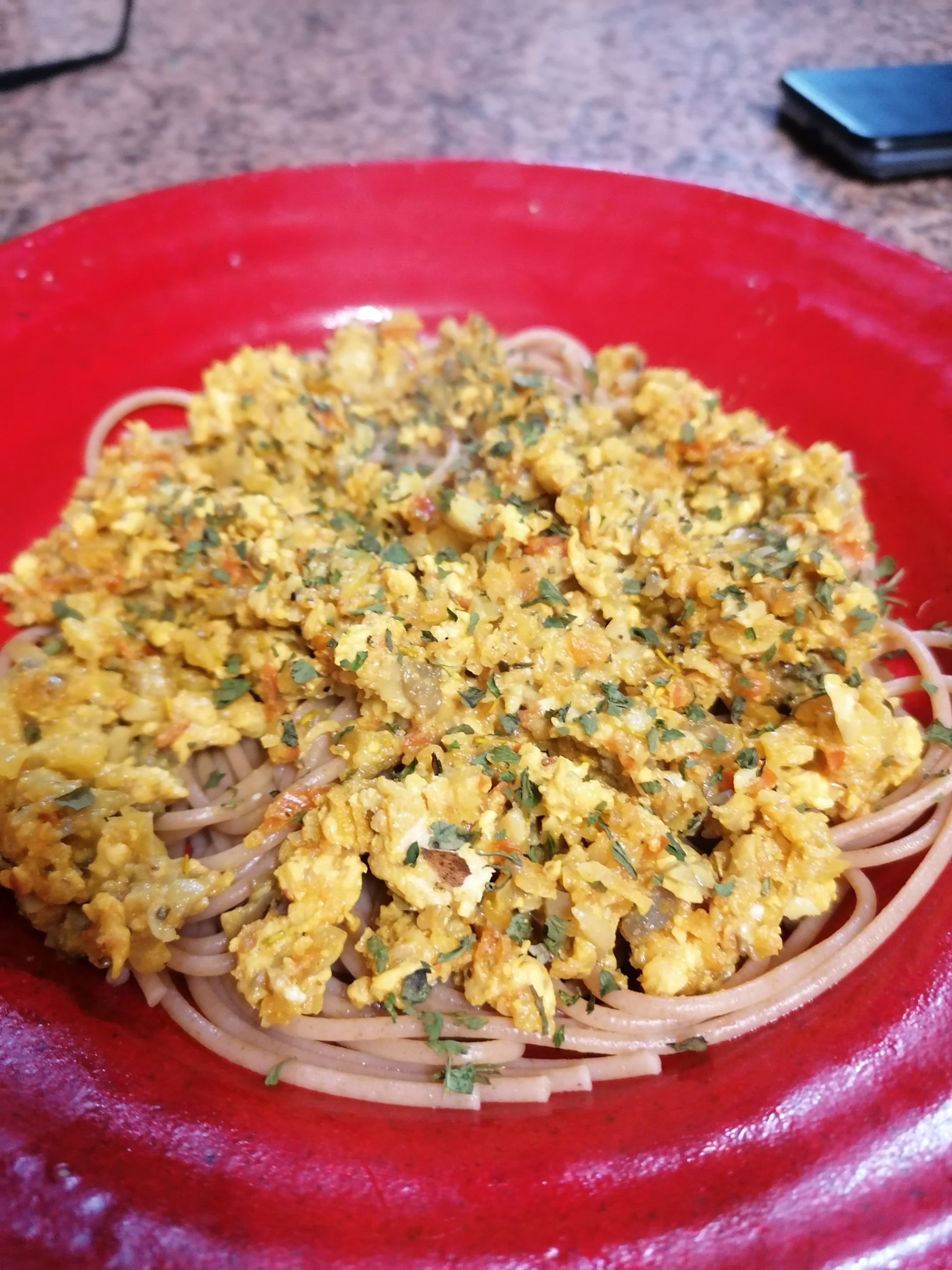 Modo de preparação: °Picar a cebola, a carne, o tomate e os cogumelos. Colocar uma colher de chá de óleo de coco na wook (também podem utilizar uma frigideira), de seguida devem acrescenta os ingredientes já triturados, deixar cozinhar cerca de 5 minutos e depois acrescentar as especiarias a gosto (podem acrescentar sal, caso queiram, não há problema). Colocar o esparguete a cozinhar (consumo 80g).